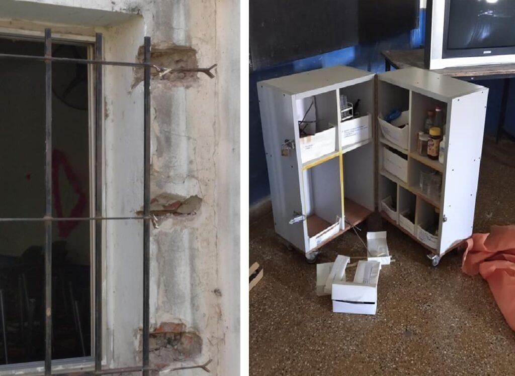 Una de las ventanas se encontraba forzada y la reja que le brindaba protección con el exterior totalmente arrancada de la pared. Así los delincuentes accedieron a un salón y robaron en la sala de profesores.