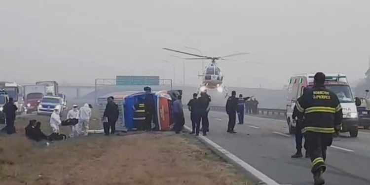 El helicóptero sanitario y ambulancia del SIES 107 se hicieron presentes en el lugar, sobre el KM 18, en jurisdicción de San Lorenzo, donde impactaron un auto y una combi, mano hacia la ciudad de Santa Fe.