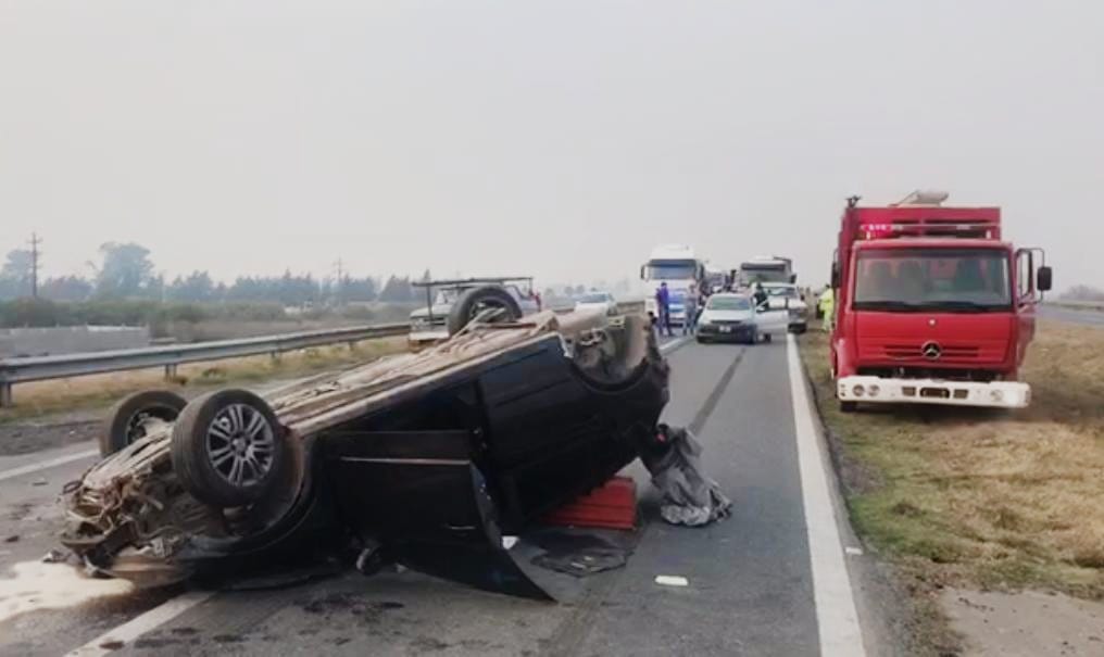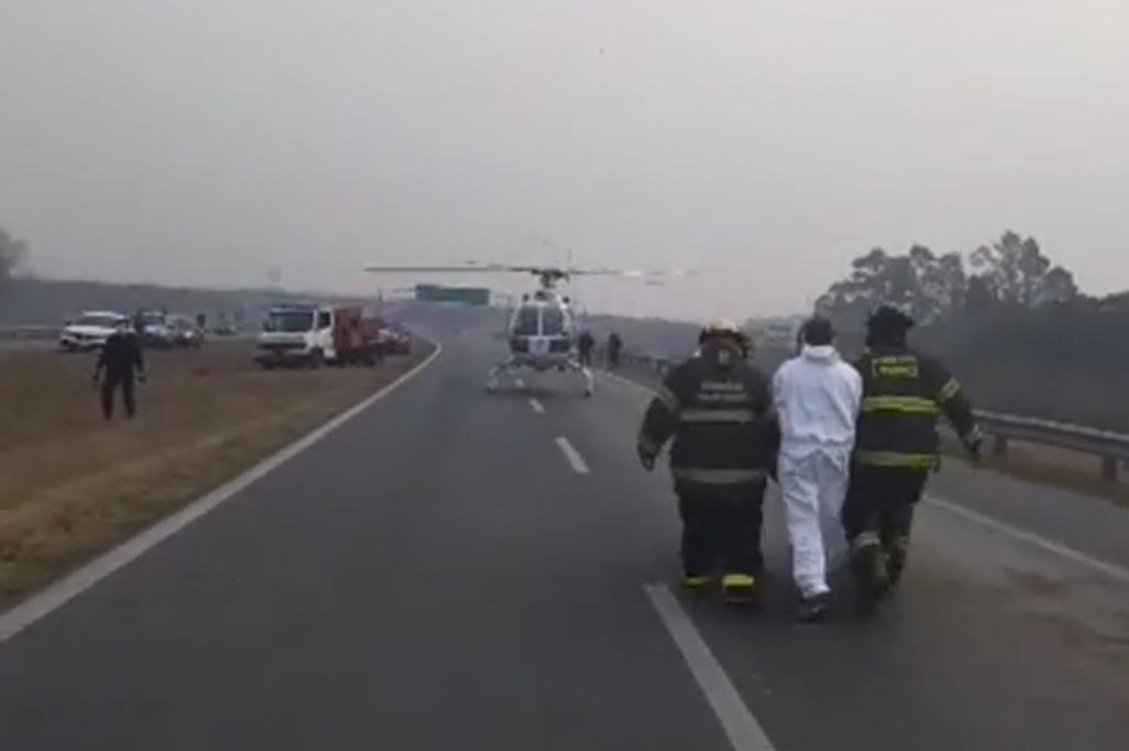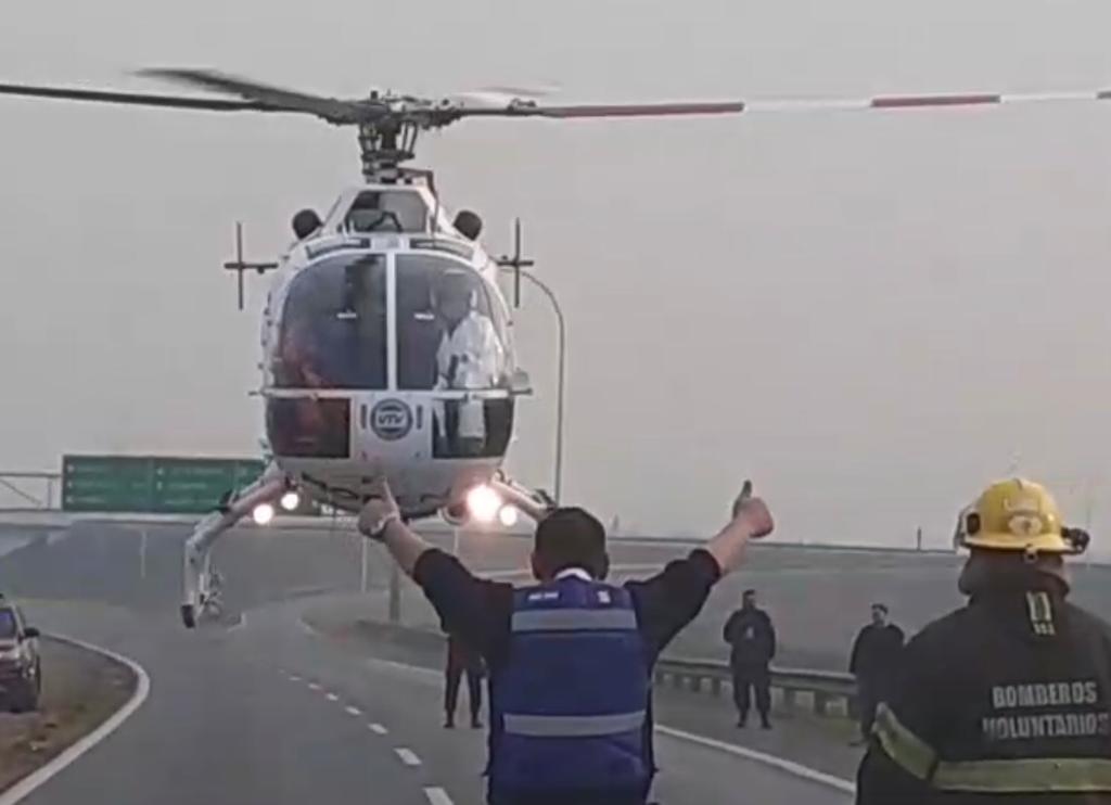 La mujer que conducía el automóvil había quedado atrapada y estaba siendo trasladada en el helicóptero sanitario por graves heridas. Además, un efectivo sufrió lesiones y también fue derivado a un efector de salud.