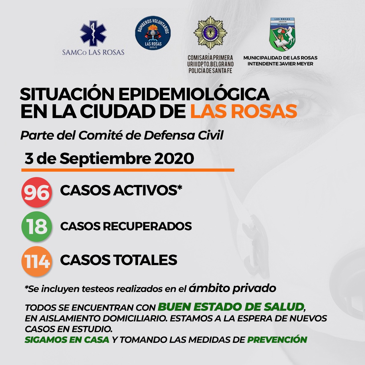 Con 25 casos nuevos confirmados de coronavirus en las últimas 24 horas, la ciudad de Las Rosas sumó un total de 114 casos desde el inicio de la pandemia, aunque su gran mayoría, en las últimas semanas.