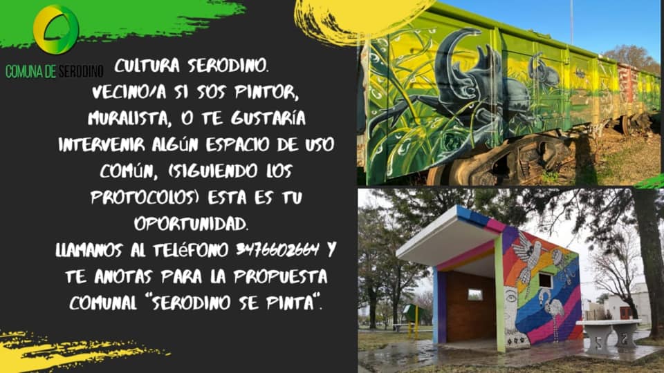 Si te gusta pintar, pintá. Con esa simple consigna desde la Comuna de Serodino y su área de Cultura invitan a los artistas para intervenir espacios públicos.