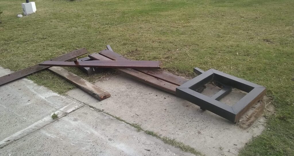 Un nuevo acto de vandalismo fue descubierto en la mañana de este domingo en Puerto Gaboto, en el sector del Paseo Ribereño. En este caso, autores desconocidos destrozaron un banco.