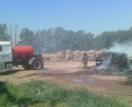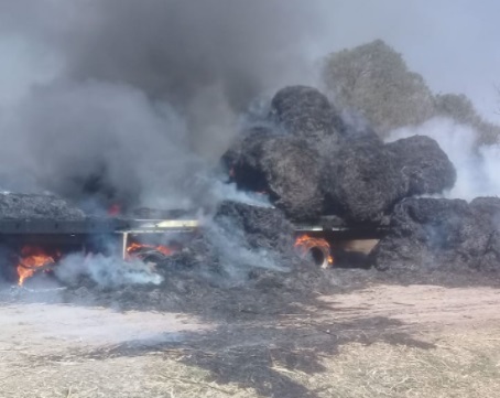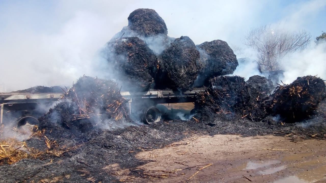 Más allá de las pérdidas materiales en los fardos y del vehículo, no hubo que lamentar heridos.