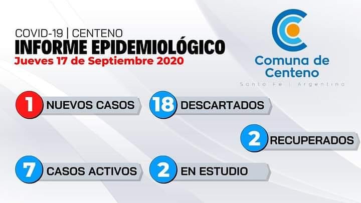 En cuanto a Centeno, el SAMCo local informó un nuevo caso lo que hace un total de 7 activos. Por su parte hay 18 descartados, 2 en estudio, 2 recuperados y 77 personas aisladas. Hay otros seis casos en estudio.