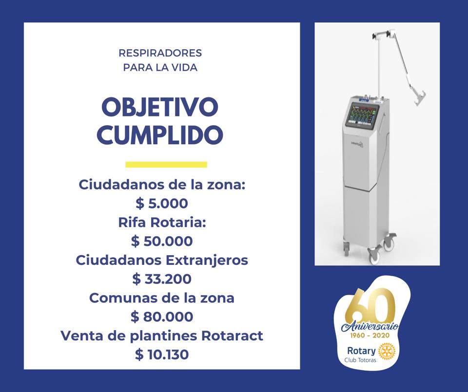 Allí, el Rotary Totoras comenzó está campaña para recaudar fondos y comprar así respiradores artificiales. Para ello contaron con un gran apoyo de los vecinos totorenses y de localidades vecinas.
