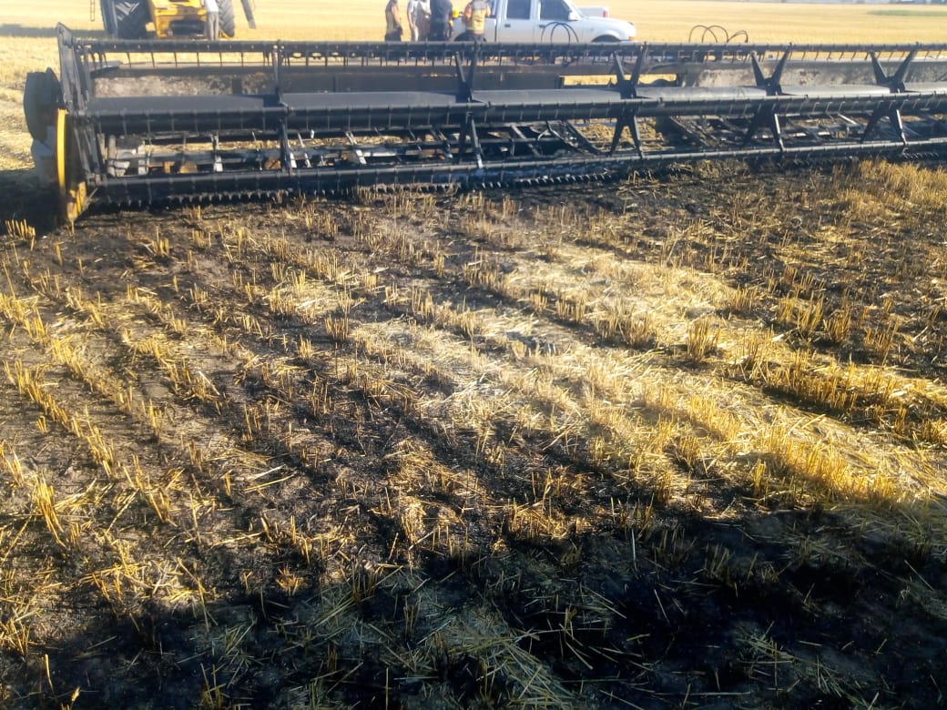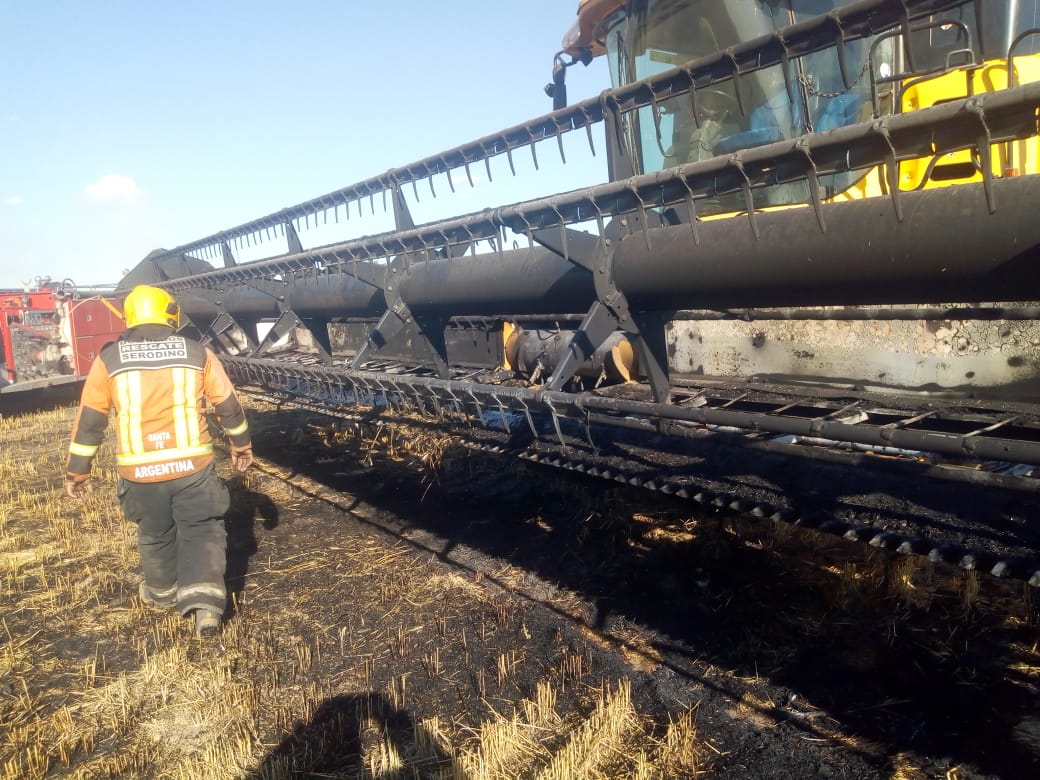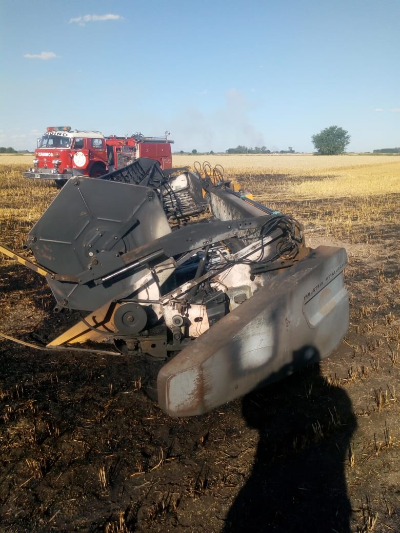 La plataforma de una cosechadora ardió en la tarde de este jueves en un campo cercano entre Andino y Serodino. Las llamas también tomaron parte de un campo.