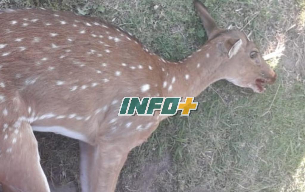 En la tarde de este viernes un ciervo de la especie Axis fue visto por vecinos en la localidad de Díaz. Asustado por los perros comenzó a correr y se provocó lesiones contra un alambrado por lo cual perdió la vida.