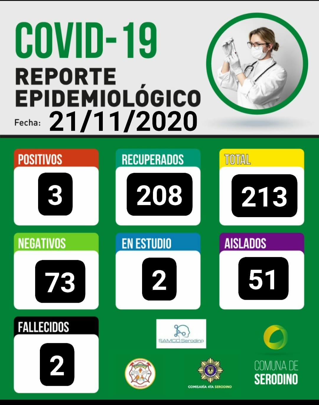Las estadísticas publicadas son datos aportados por profesionales de la salud, que se encuentran trabajando desde el inicio de la pandemia en el Samco en conjunto con la Institución Comunal.