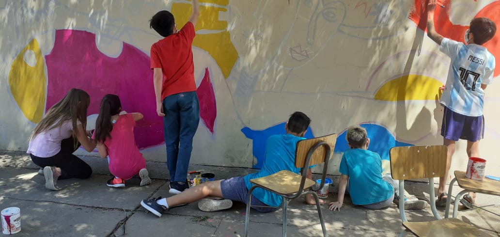 Por un lado, en lo que respecta a Roxana Riva, directora a cargo de la escuela primaria, quien trabaja junto a las vicedirectoras Marcela Poloni y Carina Morell, explicó que los alumnos de séptimo grado junto a sus docentes plasmaron un mural como impronta de su promo la cual se realizará en el 2021.