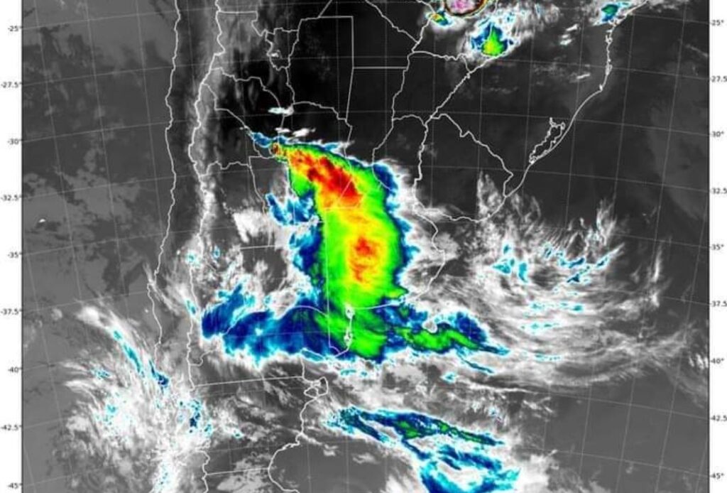 Desde el Grupo Cazatormentas del Sur agregaron que existe la posibilidad de «caída de granizo de diversos tamaños y chaparrones de lluvia».