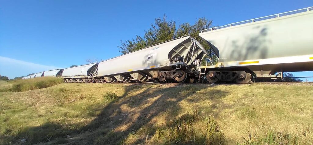 El incidente se produjo pasadas las 18 horas. Un fuerte ruido alertó a los vecinos y se trataba del tren que se dirigía en sentido sur norte y descarriló mientras salía del pueblo.