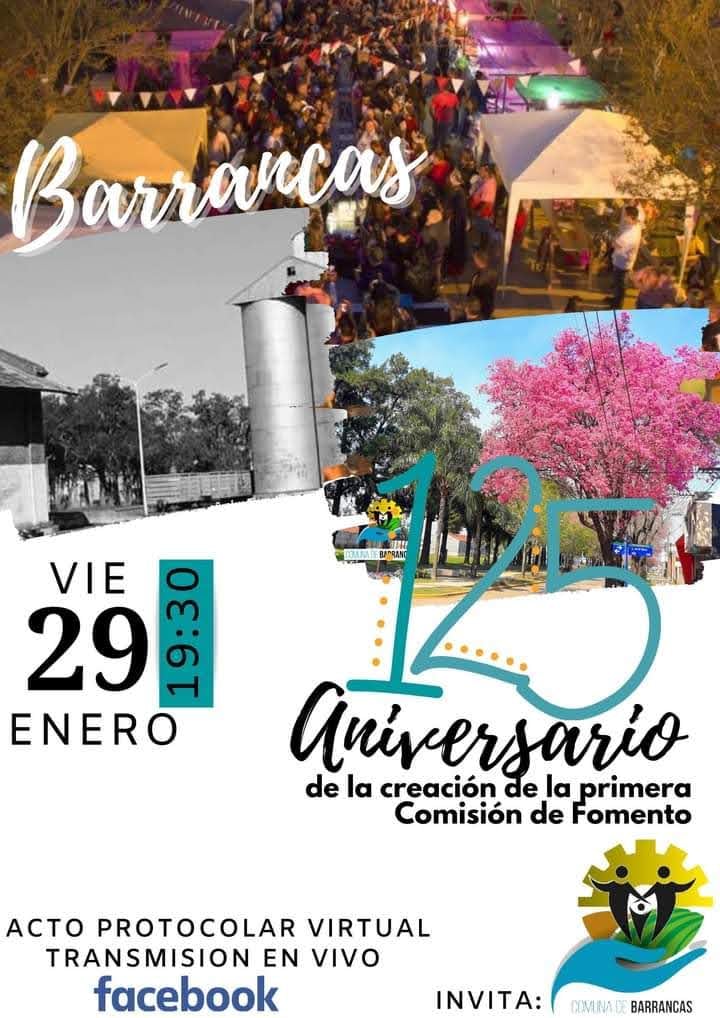 Este viernes se llevará adelante un acto vía Streeming por la Conmemoración del 125 Aniversario de la creación de la primera Comisión de Fomento de Barrancas, ocurrida el 29 de enero de 1896.