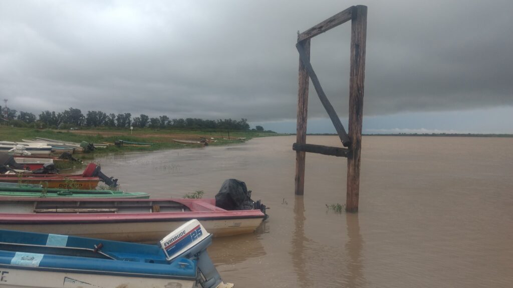 La imagen pertenece a Puerto Aragón, sobre el río Coronda. «El medidor, sus pilotes vuelven a hundirse en el río que crece. Significa mucho para quienes hemos visto el río tan bajo. Ojalá siga con esta tendencia y vuelva a surcar nuestras islas con su corriente que trae vida a los humedales.», indicaron desde las redes sociales.
