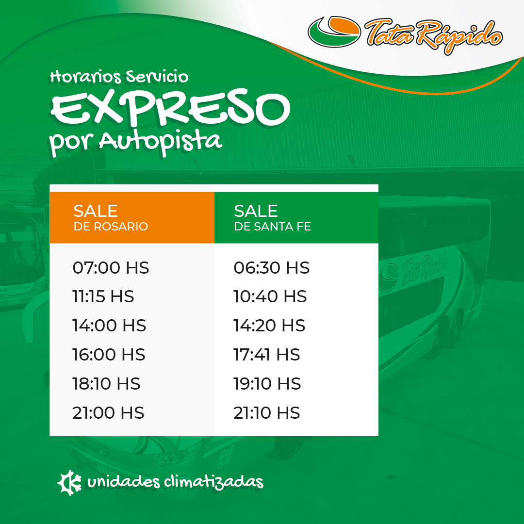 La empresa Tata Rápido, que presta servicio de transporte interurbano de pasajeros en la región bajo la modalidad intermedias por Ruta Nacional 11, informó nuevos horarios.