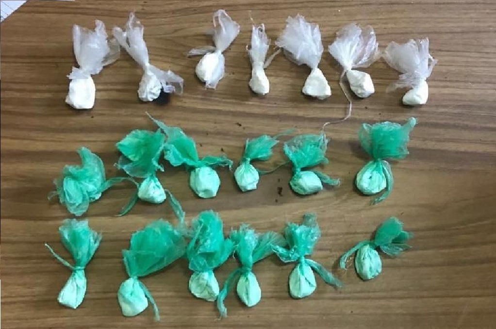 En la zona urbana fueron identificados y tras la requisa de rigor en presencia de testigos se procedió al secuestro de 16 trozos de sustancia aparentemente marihuana que se hallaba debajo del asiento del rodado y de 14 envoltorios de una sustancia aparentemente cocaína de entre las prendas de vestir de uno de ellos.