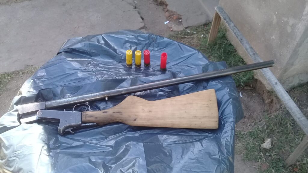 En el lugar se halló un arma larga tipo escopeta sin marca y numeración visible de un solo caño y culata de madera aparentemente en buen estado de conservación y cuatro cartuchos marca Orbea, tres intactos y uno percutado.
