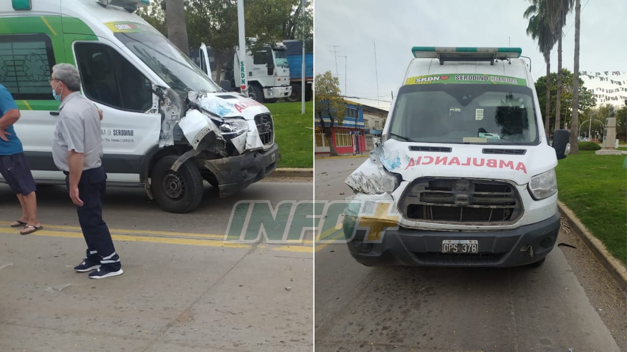 La unidad sanitaria se dirigía desde el Samco local hacia la Comuna y por el impacto con el acomplado del camión sufrió daños en su carrocería, pero afortunadamente no se registraron heridos.