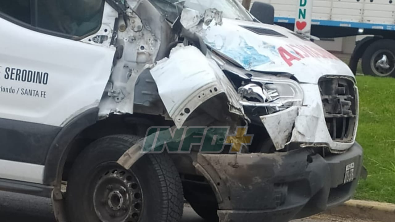 Un accidente de tránsito ocurrió luego del mediodía de este miércoles en pleno centro de Serodino. Allí la ambulancia local impactó contra un camión que circulaba por la Ruta Provincial 91.