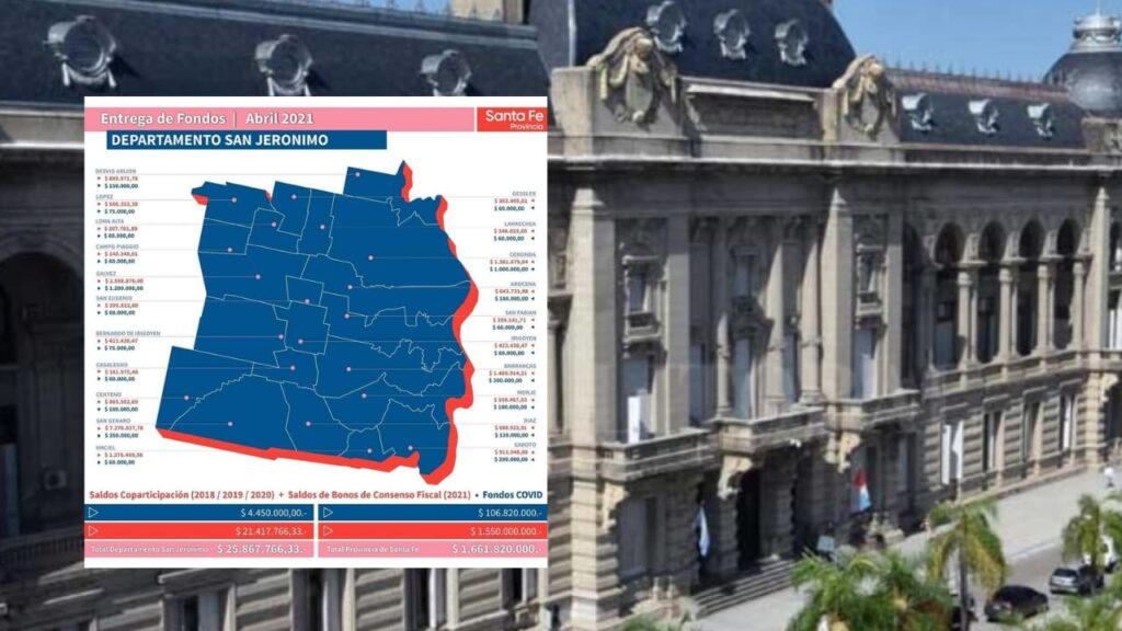 El gobierno provincial, a través de los ministerios de Gestión Pública y de Economía, transfirió a municipios y comunas de los departamentos La Capital, Las Colonias, San Jerónimo, Garay, San Justo y San Javier un total de $ 172.572.676, correspondientes a diferencias de coparticipación y servicios impagos de los Bonos del Consenso Fiscal de los años 2018 y 2019 y del Fondo de Asistencia a Gobiernos Locales – Covid.
