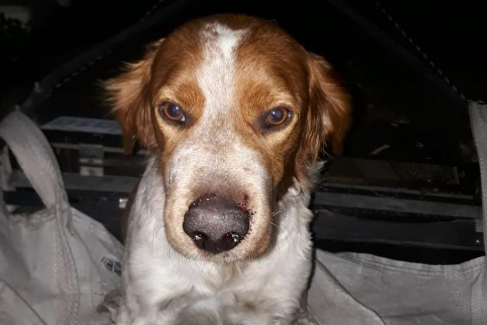 Goten se encontraba junto a su familia en el jardín de su vivienda en Puerto Gaboto, sobre calle Alameda, cuando una víbora Yarará lo picó en el hocico. Desde el Grupo Huellas Sin Techo, alertan sobre la aparición de víboras en el pueblo.