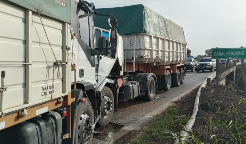 El siniestro se originó minutos antes de las 16 horas cuando dos pesados rodados se encontraron de frente sobre el angosto puesto que se encuentra entre La Ribera y Serodino.