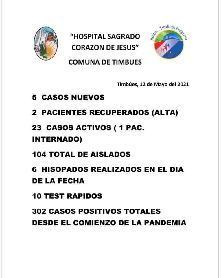 El parte epidemiológico emitido este miércoles por las autoridades de salud de la localidad de Timbúes indicó que se sumaron cinco casos nuevos.