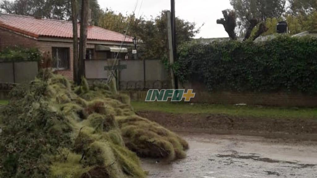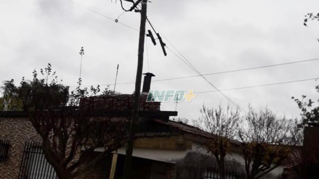 Mientras los fuertes vientos continúan azotando en toda la región, en Gaboto provocó la caída de un pino que derribó a su vez, parte del tendido eléctrico. Horas antes, el pueblo también estuvo afectado por cortes de luz.