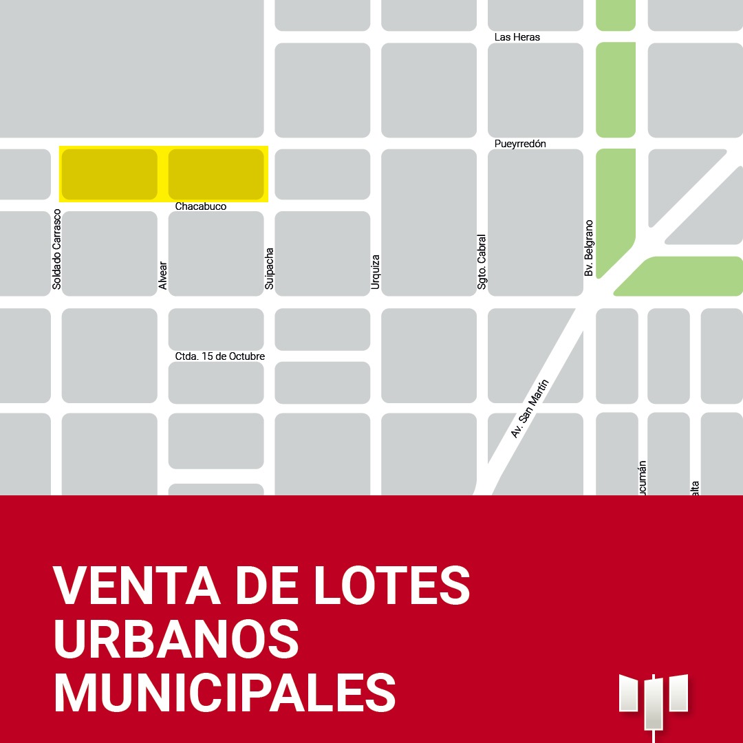 El Municipio de Totoras pone a la venta 48 lotes urbanos con servicios (tendido eléctrico, alumbrado público, agua potable, red cloacal, cordón cuneta), ubicados entre calles Pueyrredón, Soldado Carrasco, Chacabuco y Suipacha.