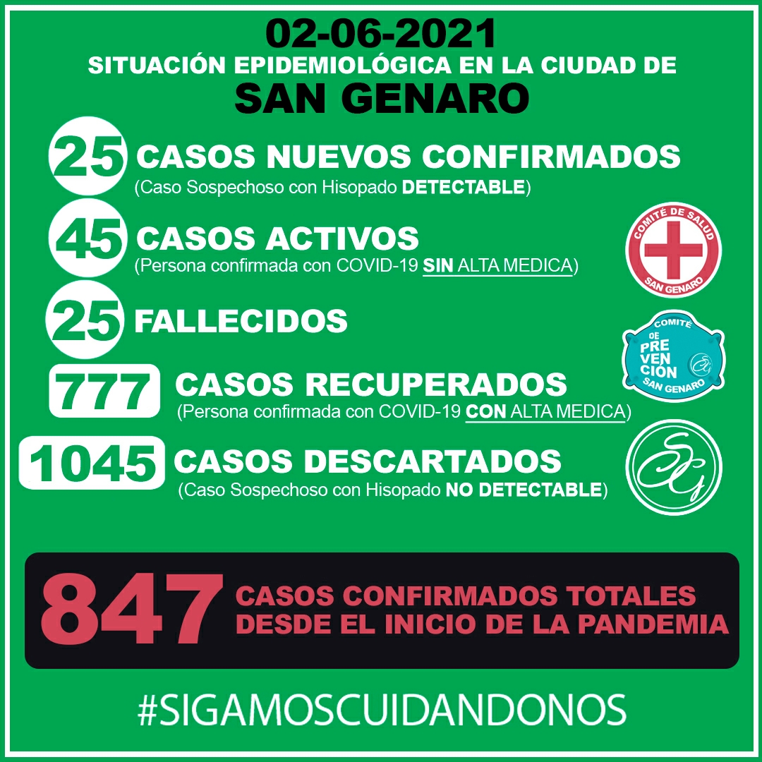 La ciudad de San Genaro reportó en suinforme oficial de este miércoles dos personas fallecidas con coronavirus y un total de 25 casos nuevos.