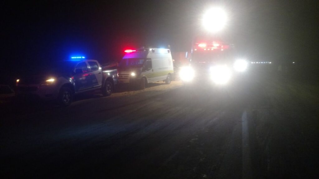 Cerca de las 21 horas bomberos voluntarios de la ciudad se dirigieron al lugar del siniestro, circulando desde Bustinza (sentido oeste – este), a metros de la curva del cementerio totorense.