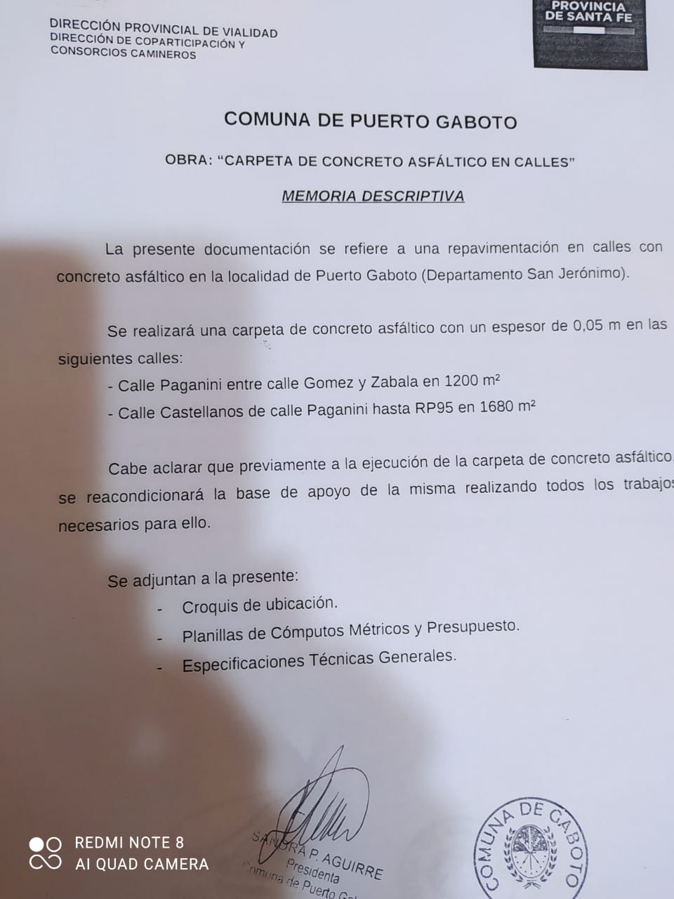 Este jueves la presidenta comunal Sandra Aguirre firmó el convenio para la ejecución de una carpeta de concreto asfáltico con un espesor de 0.05m en cuatro cuadras de la localidad.
