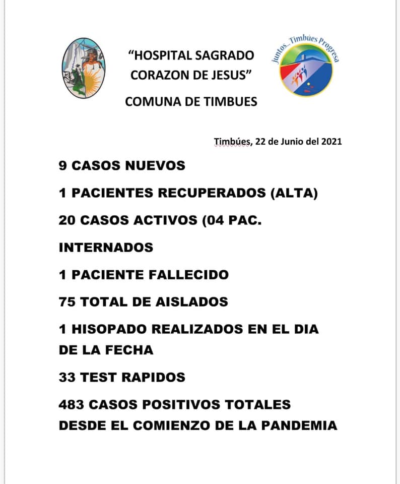 Si bien el reporte oficial registró un nuevo fallecido con covid en Timbúes, no se dieron a conocer la cantidad de víctimas fatales desde el inicio de la pandemia hasta la fecha.