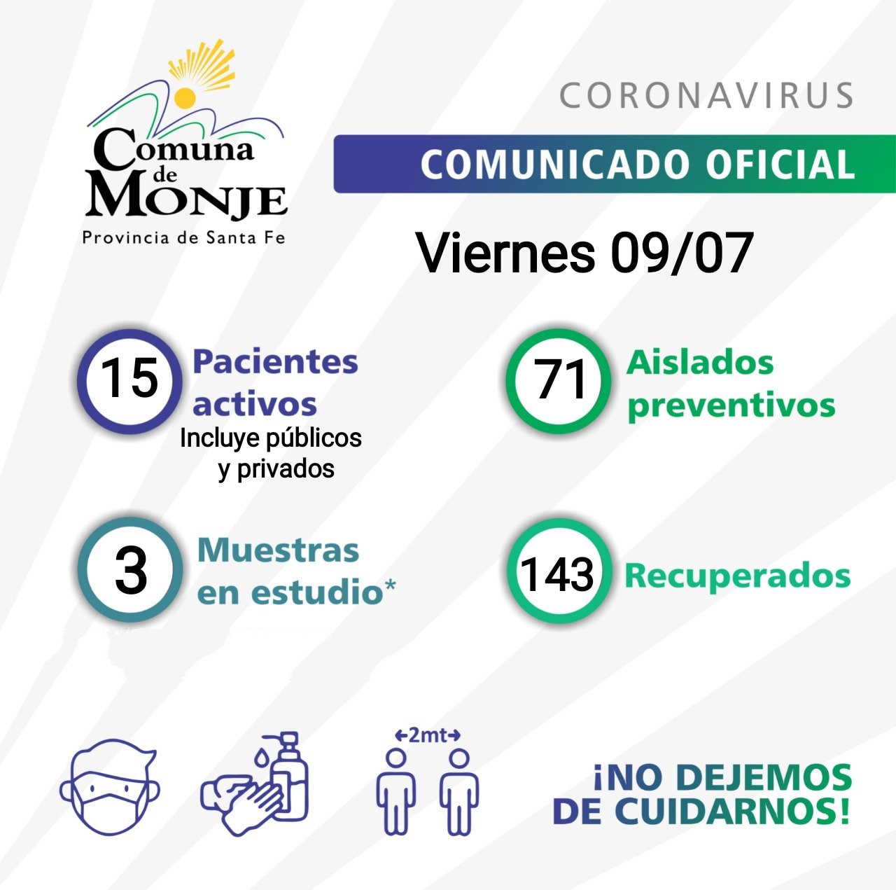 Por otro lado, del parte epidemiológico emitido el pasado martes 6 de julio al último publicado este viernes 9, Monje sumó un total de nueve casos nuevos de coronavirus. Ante esto y sin registrar nuevos recuperados, son un total de 15 los vecinos del pueblo que se encuentran transitando la enfermedad.