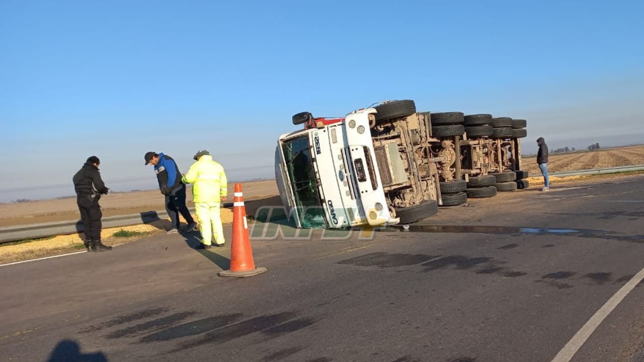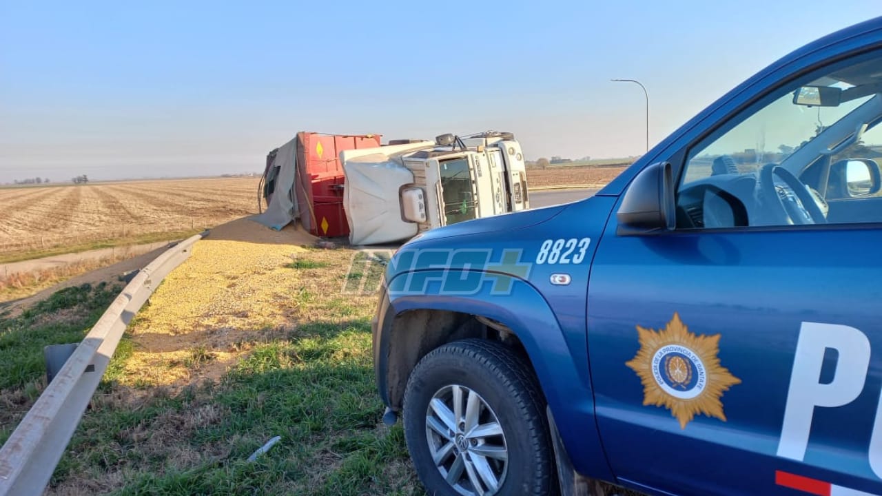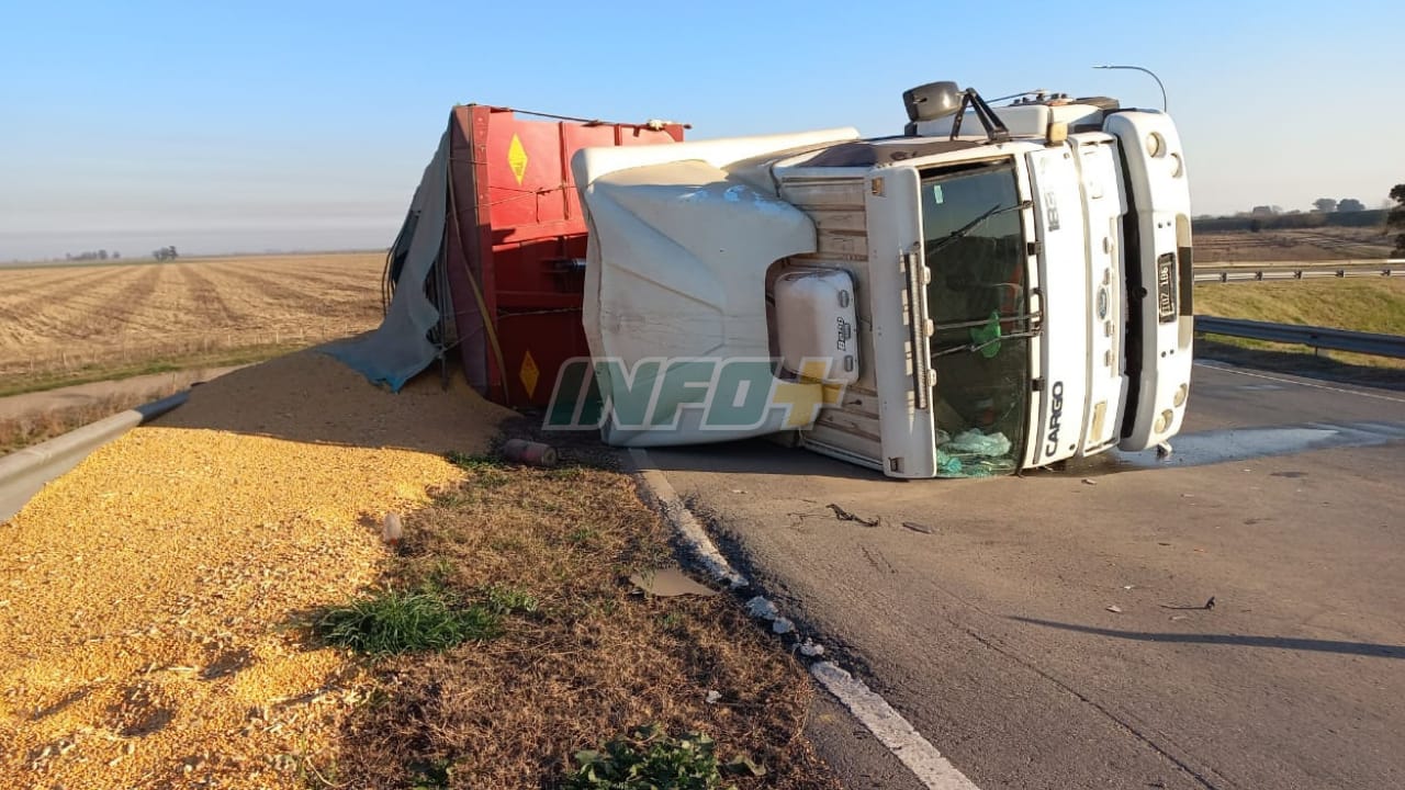 Un camionero sufrió un accidente cuando intentaba utilizar el rulo para salir de la autopista Rosario Santa Fe hacia la Ruta Nacional 11.
