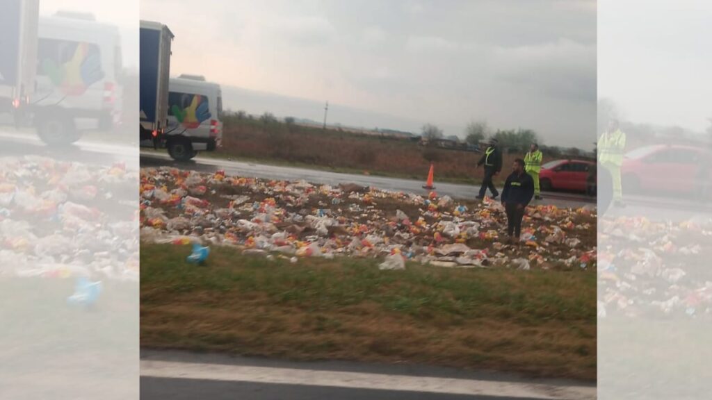 En medio del temporal de lluvia y viento un camión sufrió un inconveniente en la autopista Rosario Santa Fe a la altura de Fray Luis Beltrán y desparramó toda su carga.
