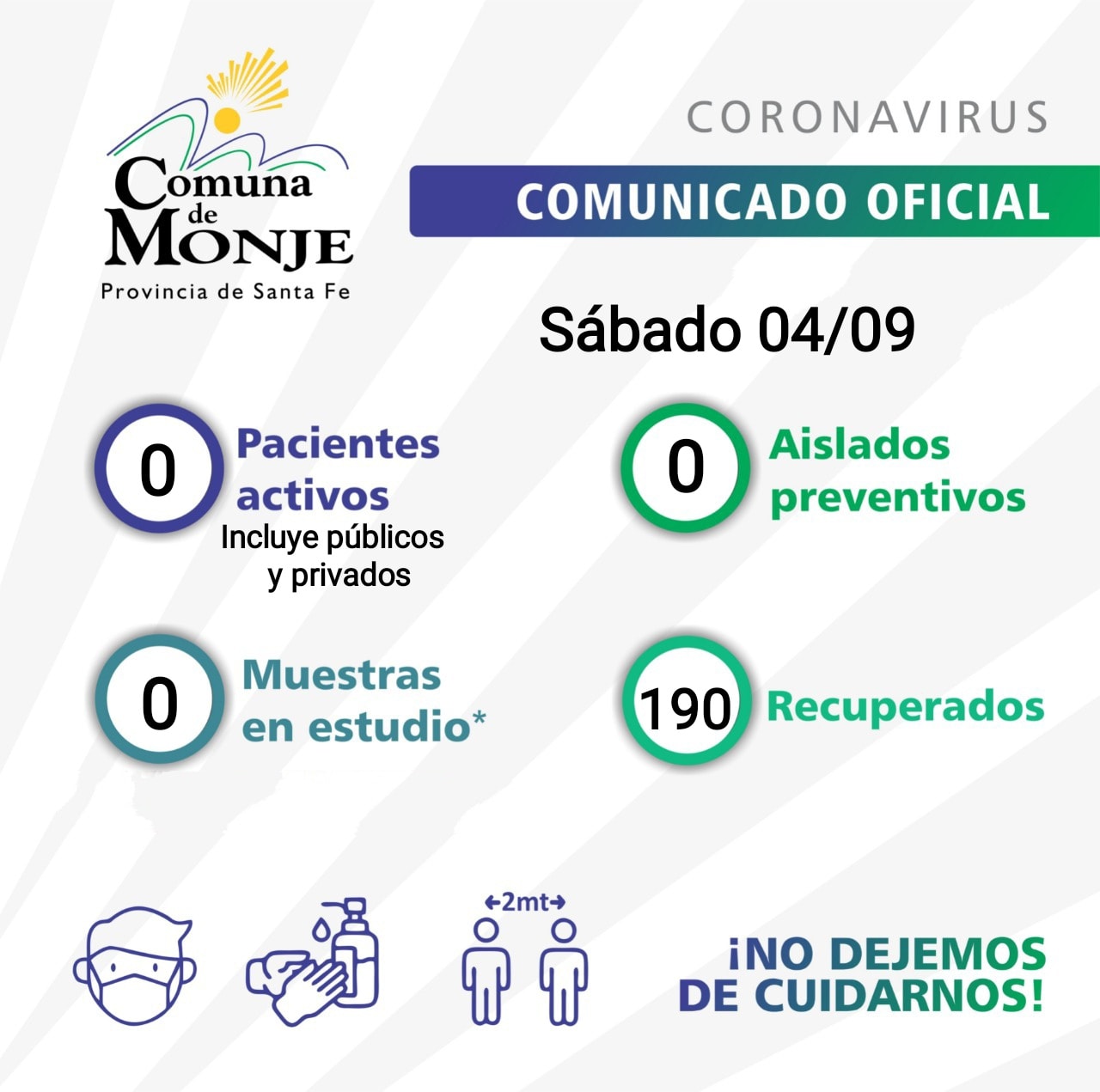 El último informe epidemiológico emitido por el Comité de Monje reveló que el pueblo continúa sin casos de covid. Además, tampoco hay casos sospechosos ni vecinos aislados.