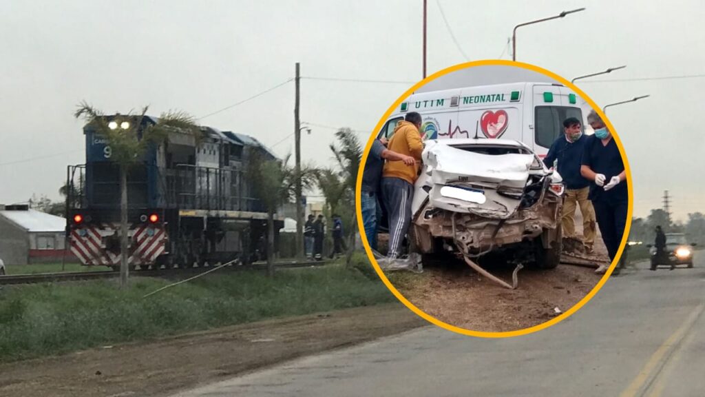 Un fuerte accidente sucedió en la tarde de este martes en la localidad de Timbúes, donde un auto fue embestido por la locomotora de un tren cuando intentaba cruzar las vías.