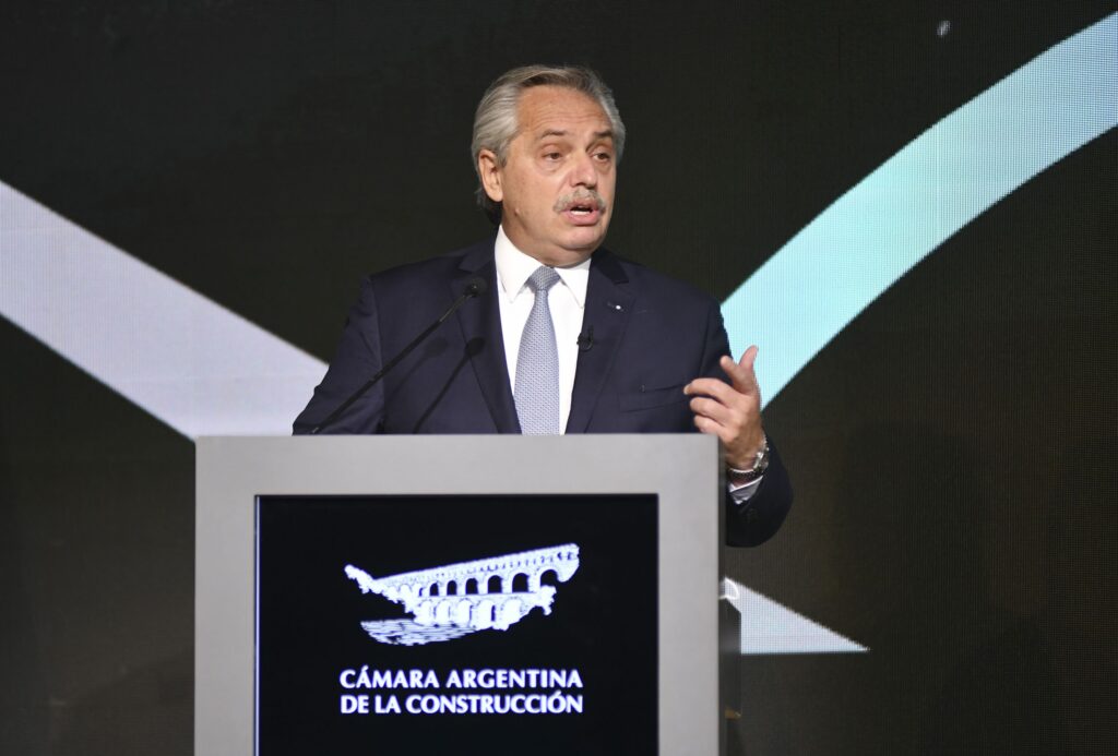 “Tenemos que construir puentes, el primero es el puente hacia el diálogo y el consenso”, expresó Fernández junto al titular de la Cámara Argentina de la ConstrucciónIván Szczech, en el predio La Rural.