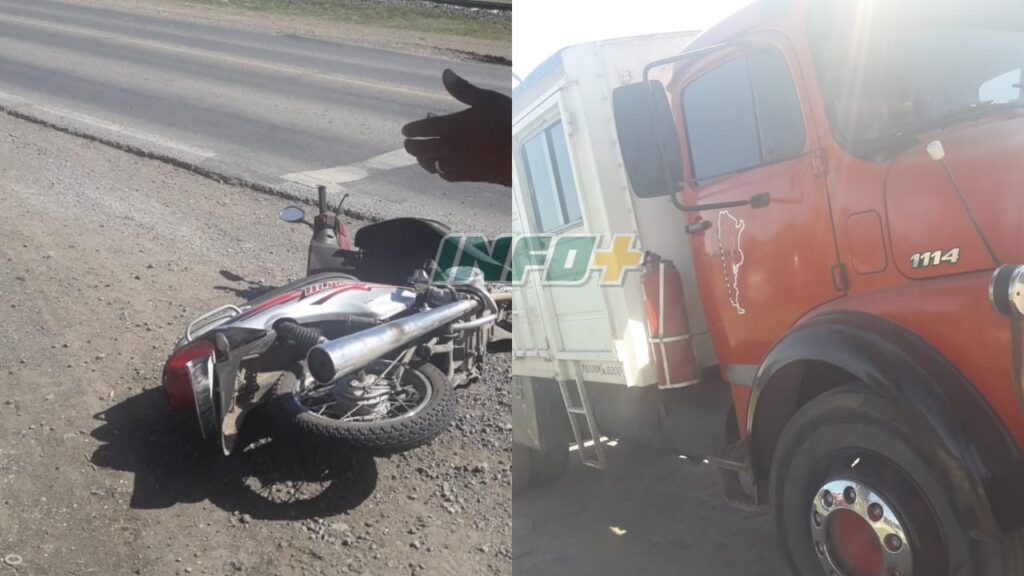 Sobre el KM 338 de la traza, colisionó una motocicleta marca Motomel 110 cc color bordo, gris y negra conducida por un joven de 25 años de Timbúes, y un camión marca Mercedes Ben guiado por C.M.E. de 33, de San Lorenzo.