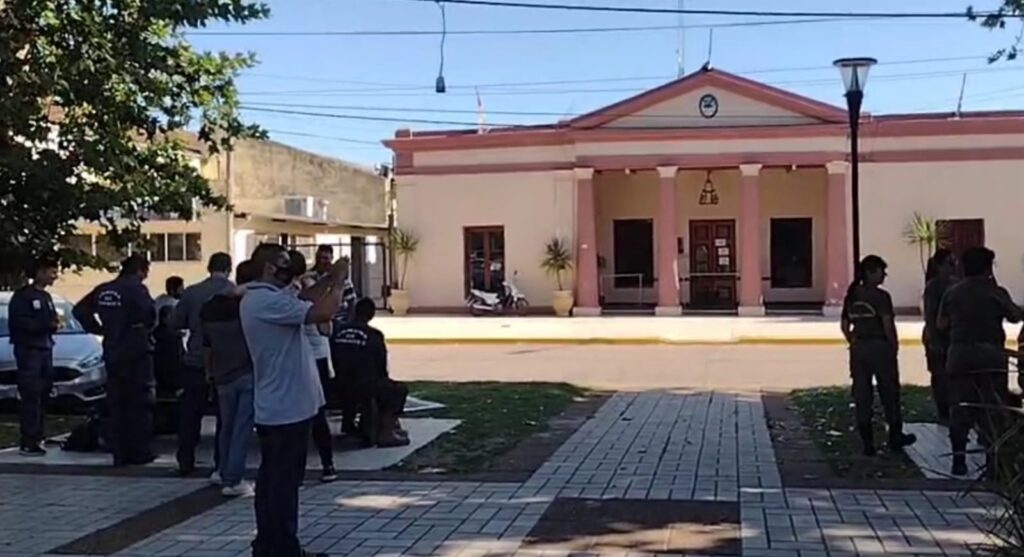 En medio del paro, los trabajadores se encuentran reunidos en las puertas de la sede comunal a la espera de una solución por parte de la comisión que el viernes 10 de diciembre dejará su mandato.