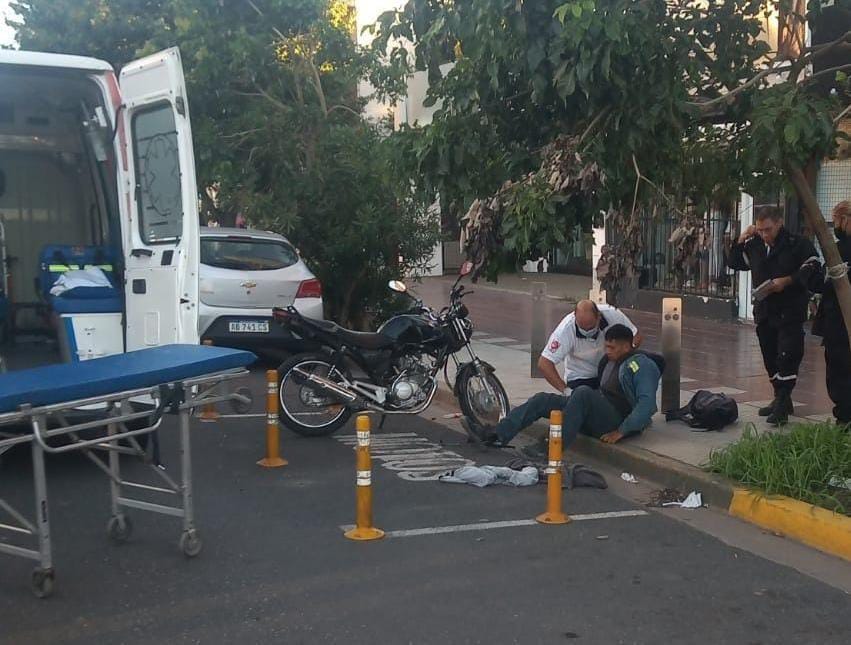 El muchacho de 22 años cayó de su vehículo y quedó tendido en la vereda. Fue examinado en el lugar tras la llegada de una ambulancia y trasladado al Hospital Granaderos a Caballo.