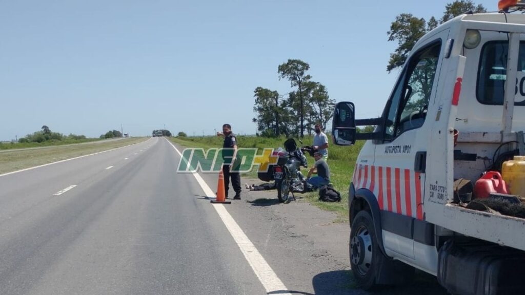 Dos hombres en una moto sufrieron un accidente cuando viajaban sobre la autopista Rosario Santa Fe. El accidente se produjo a la altura de la localidad de Maciel y ambas personas resultaron heridas.