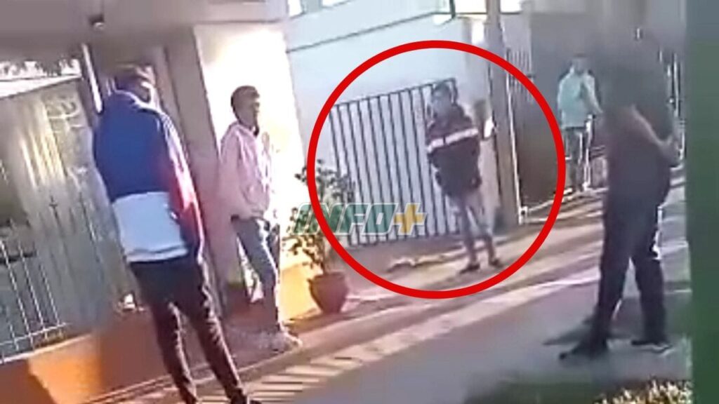 Las impactantes imágenes que se viralizaron muestran cómo el atacante espera a la víctima, que sale de una panadería frente a la terminal de ómnibus y le propia un brutal golpe con una piedra en la cabeza que lo dejó inconsciente.