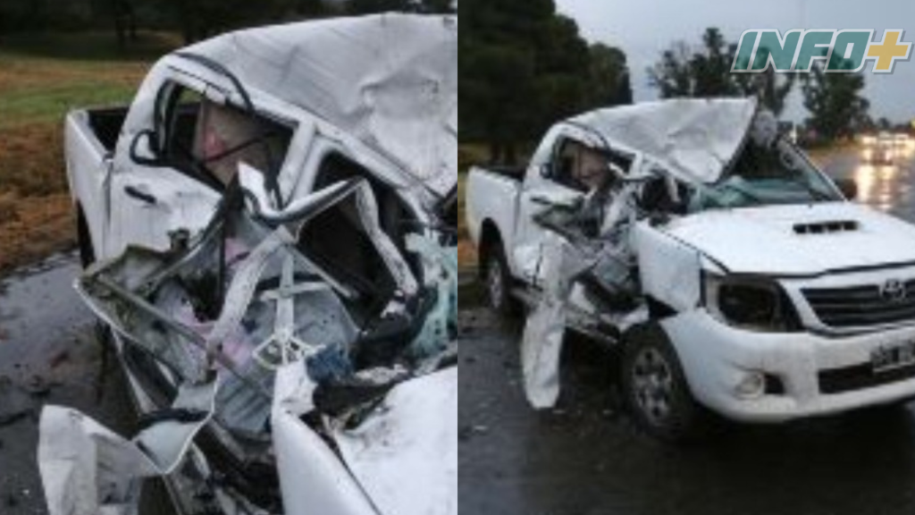 La colisión entre los vehículos fue tan fuerte que la camioneta, una Toyota Hilux, quedó totalmente destrozada del lado del acompañante. Su conductor se encontraba en grave estado.