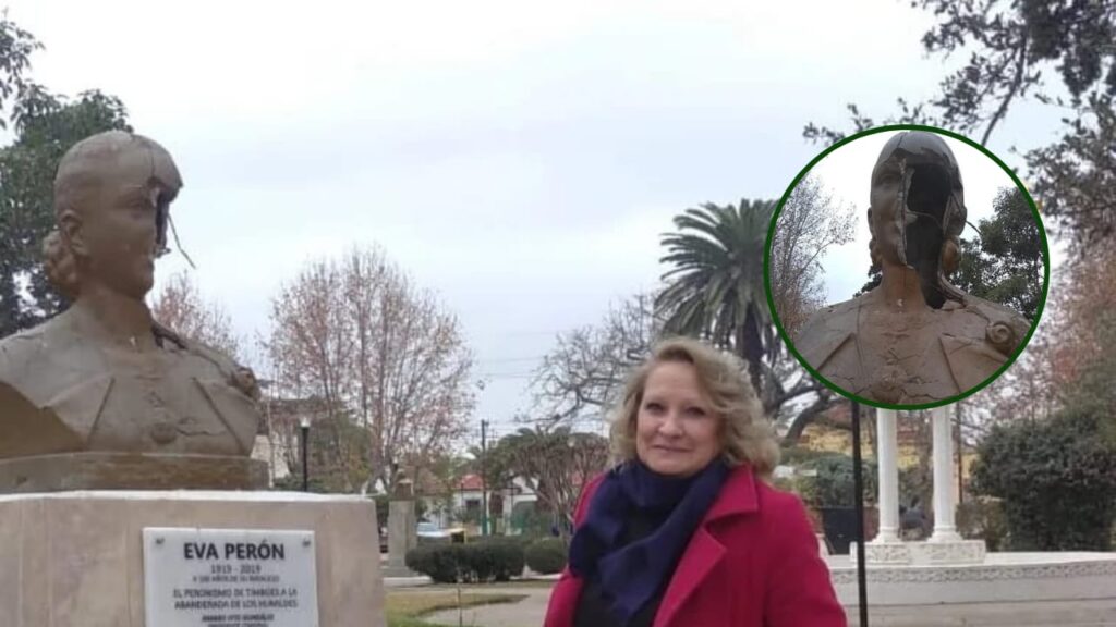 Tras el repudiable hecho de vandalismo, el Gobierno de Timbúes, comenzó con los trabajos de restauración del busto de María Eva Duarte De Perón que se encuentra en la Plaza Central.