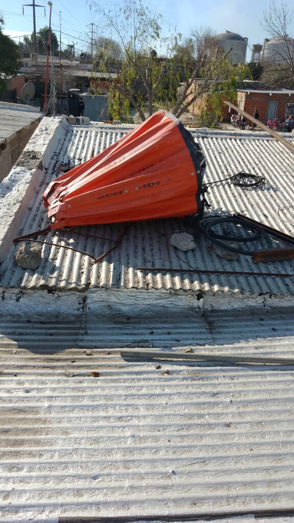 Arriba del techo vieron un elemento de plástico, que por comentarios resulta ser el balde de un helicóptero que pasó y del que aparentemente se había desprendido.