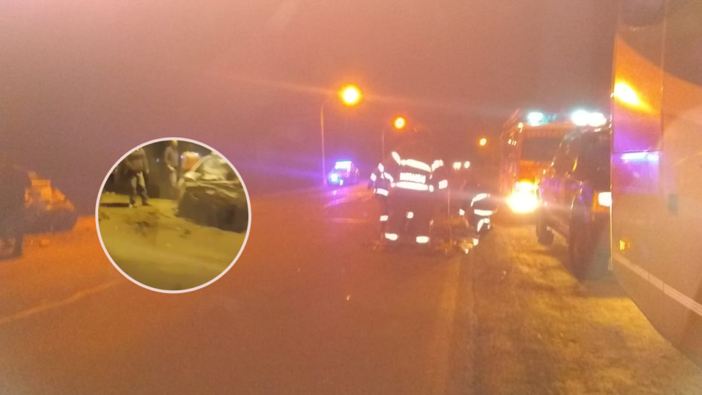 Al llegar los servicios de emergencia, se encontraba en el lugar, en sentido norte sur, el vehículo de pasajeros detenido en la garita y por detrás, el auto con serios daños en su parte delantera.