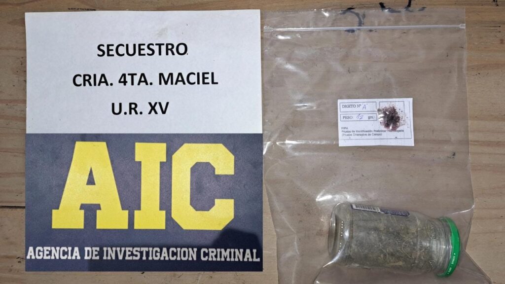 A las 15.30 horas, se hizo presente personal de la AIC, brigada Departamento San Jerónimo, quien se hizo cargo del secuestro. Al realizar la prueba de reactivo se obtuvo cómo resultado positivo en cuanto a marihuana.