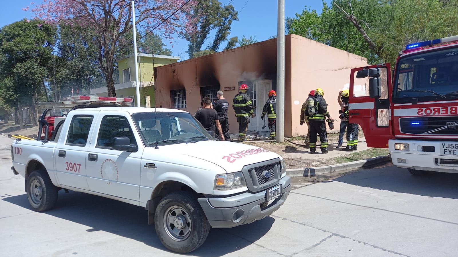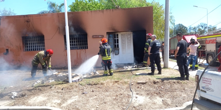 El hecho ocurrió en el domicilio ubicado en calle España y Sarmiento. Se sospecha que el foco ígneo se originó debido a una falla eléctrica en el ingreso a la vivienda.