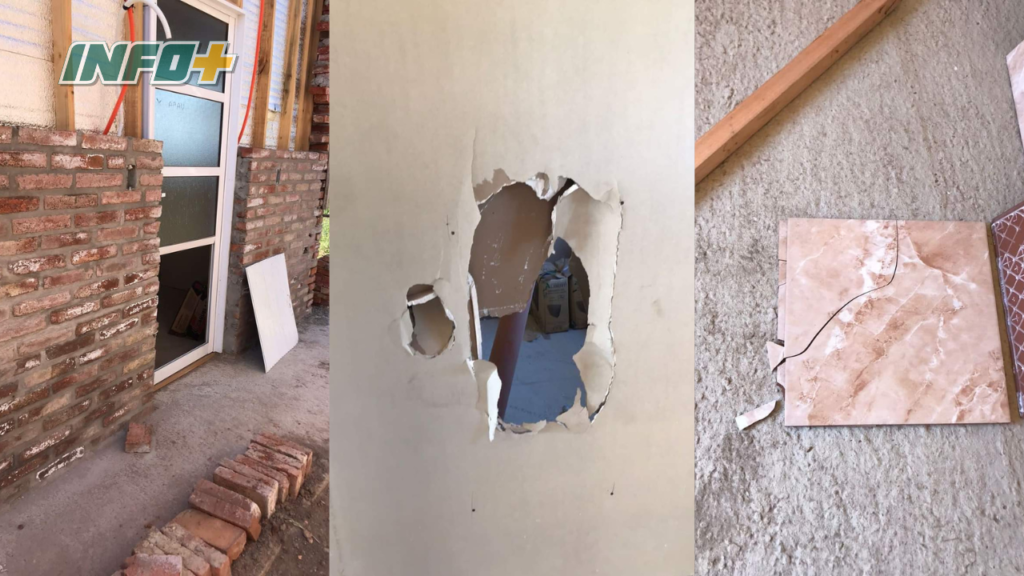 En diálogo con Conectad@s 24/7, el hombre detalló que la primera vez, rompieron una abertura de aluminio y vidrios, por lo cual radicó la denuncia. En la segunda oportunidad, rompieron una puerta de aluminio y placas de durlock, lo cual no denunció ya que estaba de viaje y la última vez, la noche del sábado, destrozaron dos ventanas, dos puertas y varias paredes de yeso.